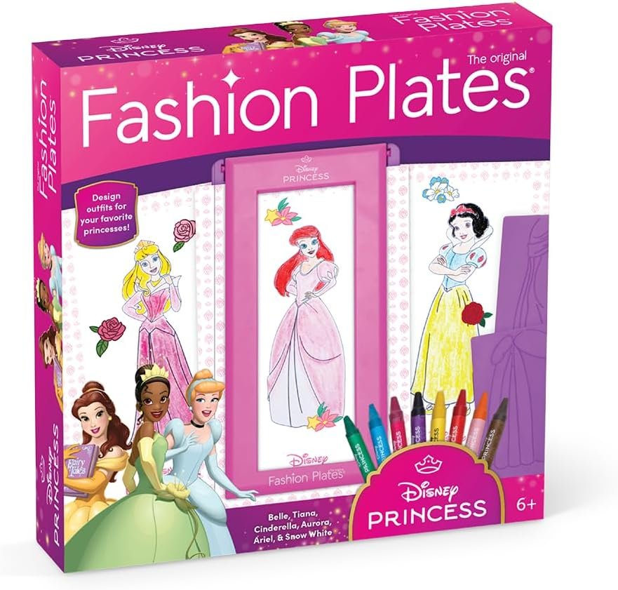 • Fashion Plates Disney Princess – Mix-and-Match Drawing Kit, Arts and Crafts, Coloring, Art Supplies, Craft Supplies, Stencils, Crayons Included, Create Your Own Designs, Ages 6+